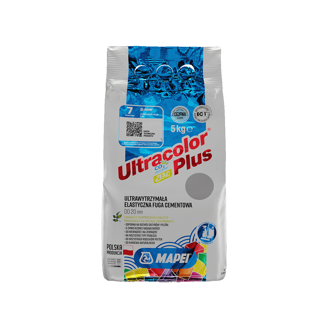 Fuga Ultracolor Plus to cementowa fuga marki MAPEI. Produkt charakteryzuje się wyjątkową elastycznością i wytrzymałością, dzięki czemu idealnie nadaje się do wszystkich rodzajów płytek oraz do kamienia naturalnego na różnych podłożach, zarówno wewnątrz, jak i na zewnątrz budynków.