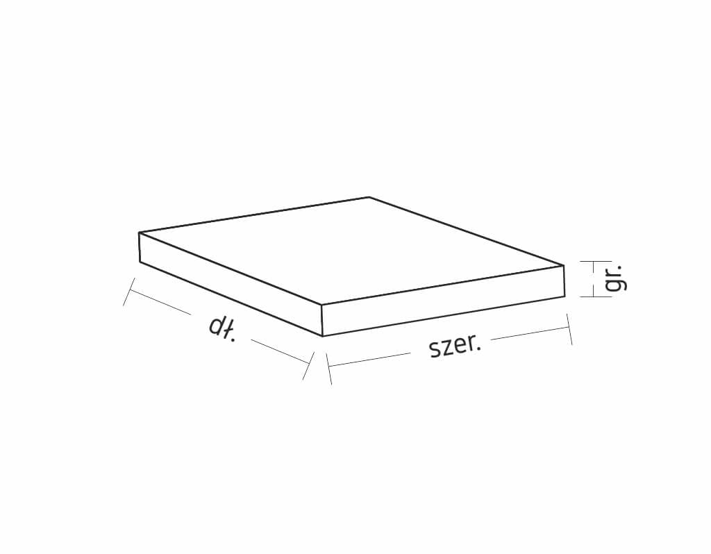 * również rozmiary rzeczywiste, ze względu na naturalne pochodzenie granitu i sposób wytworzenia produktu, mogą się różnić od wymiarów nominalnych; dla grubości > 12 mm ≤ 30 mm odchylenie wynosi ± 10%, dla grubości > 30 mm ≤ 80 mm odchylenie wynosi ± 3 mm, dla grubości > 80 mm odchylenie wynosi ± 5 mm (zgodne z normą PN-EN 12058:2015)